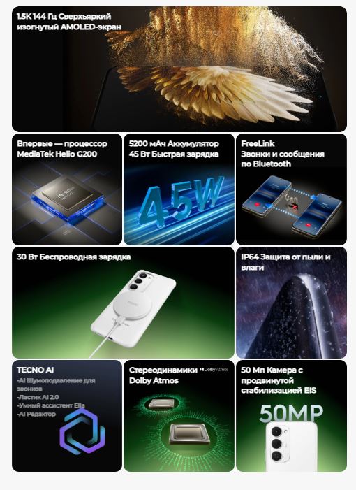 Отзывы Смартфон Tecno Spark 40 Pro+ 8/256GB White/Белый